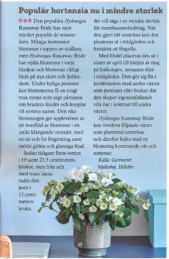 Artikel: Populär hortensia nu i mindre storlek (Viola)
